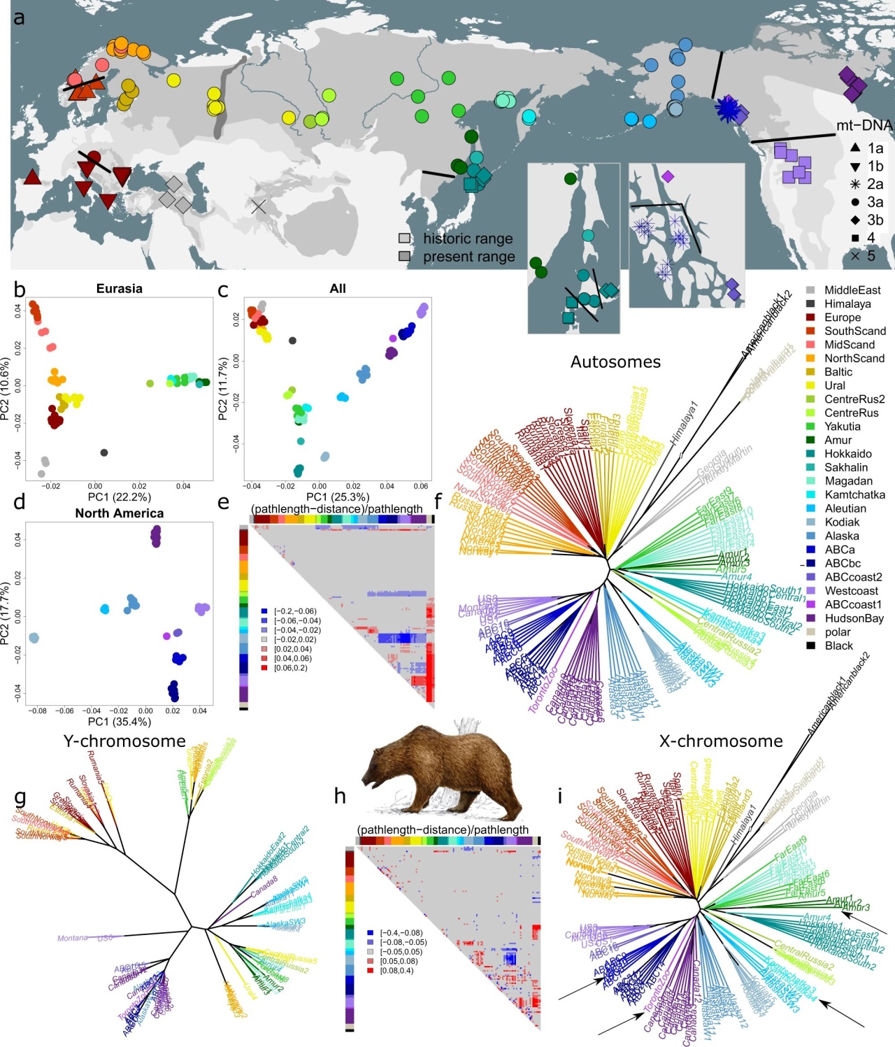 3) Kamchatka brown bear (U a beringianus) (dark blue)