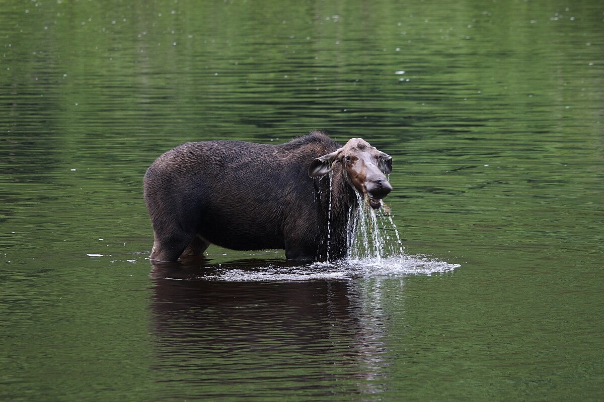 Moose are cursorial (with limbs adapted to running), terricolous (live on the ground), diurnal (active during the daytime), crepuscular (active at dawn and dusk), motile (move around as opposed to being stationary), natatorial (equipped for swimming),migratory (make seasonal movements between regions, such as between breeding and wintering grounds), sedentary (remain in the same area), solitary and have dominance hierarchies (ranking systems or pecking orders among members of a long-term social group, where dominance status affects access to resources or mates). [Source: Daniel De Bord, Tanya Dewey; Anne Bartalucci; Bret Weinstein, Animal Diversity Web (ADW) |=|]
