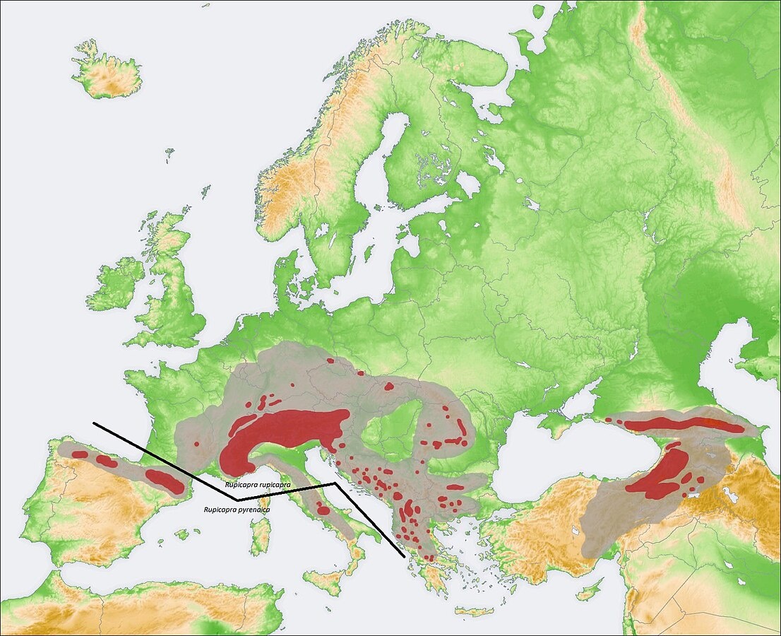 Alpine chamois (Rupicapra rupicapra rupicapra) live in Austria, France, Germany, Italy, Switzerland, Slovenia, Slovakia (Veľká Fatra, Slovak Paradise) and New Zealand (introduced)