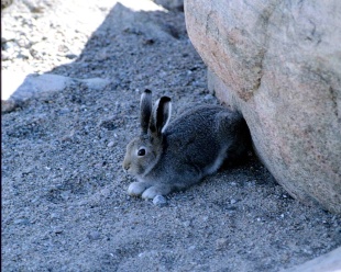 According to National Geographic: “The arctic hare lives in the harsh environment of the North American tundra. These hares do not hibernate, but survive the dangerous cold with a number of behavioral and physiological adaptations. They sport thick fur and enjoy a low surface area to volume ratio that conserves body heat, most evident in their shortened ears. Hares are a bit larger than rabbits, and they typically have taller hind legs and longer ears. [Source: National Geographic]