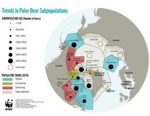 In February 2019, at least 52 bears entered the area near Belushya Guba, the main settlement on an the island in the Russian archipelago of Novaya Zemlya in the Arctic Ocean. Dozens of polar bears were seen trying to enter homes, civic buildings, and inhabited areas. Footage shows the polar bears looking for food in the rubbish at a local dump. Polar bears cannot subsist on a garbage-based diet because of a lack of enough protein and fat. The Arkhangelsk Oblast authorities declared a state of emergency.[Source: Wikipedia]