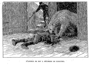 The bear flew backward and Dyer with it. They hit the ground as one. He felt a sudden sharp pressure in his chest—his lung collapsing. His jaw cracked in the bear's jaw. And now it had him clean by the head and was galloping toward the beach. The land went by. His eyes were fixed toward the bear's rolling abdomen, a convexity of wet, creamy fur. It's taking me into the water, he thought. That's what it would do with a seal. It wants to get me away from those people. The bear was exerting itself tremendously now. It huffed hot exhales that flowed over Dyer's nose and ears. The stench of dead fish felt thicker with each of its breaths.