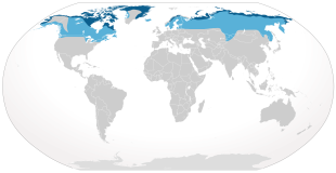 Snowy owls are typically found in the northern circumpolar region and breed on the Arctic tundra of both Eurasia and North America. They makes their summer home north of latitude 60° north but sometimes drop down to 55° north. But it is important to keep in mind that these owls are particularly nomadic and because population fluctuations in their prey species they can be forced to relocate. The total breeding range of snowy owls overs 12 million square kilometers (4.6 million square miles), but only about 1.3 million square kilometers (500,000 square miles) has habitat where they consistently breed. It was once believed that snowy owl migrations were periodic, occurring regularly every three or four years, and that they matched the population lows of Arctic lemmings. However, recent analyses show that the numbers of snowy owls wintering in various parts of North America fluctuate irregularly from year to year. Some Snowy Owls may also migrate between Russia and Canada. [Source: Wikipedia]