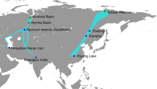 Western populations breeding in the Tyumen District, Russia and winter in Fereidoonkenar and Esbaran in Iran. There used to be a central population that bred on the basin of the Kunovat river in Russia and wintered in Keoladeo National Park, India. This population is now extinct. They are native to Asia. |=|