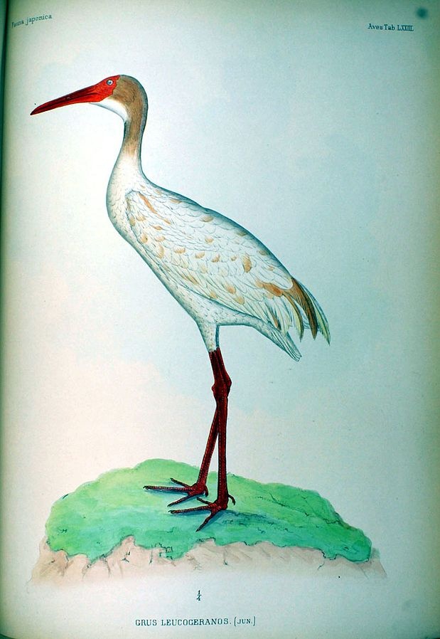 Siberian cranes live a long time. The world’s oldest living bird, according to the Guiness Book of World Records, is a Siberian crane named "Wolf" that died at the age of 82 at the International Crane Foundation facility in Wisconsin. Cranes have long been associated with longevity in China and Japan, where pictures and statues of cranes are displayed at weddings and birth ceremonies. They are symbols of health and prosperity and a life without war, therefore these birds are the symbol of peace. |=|