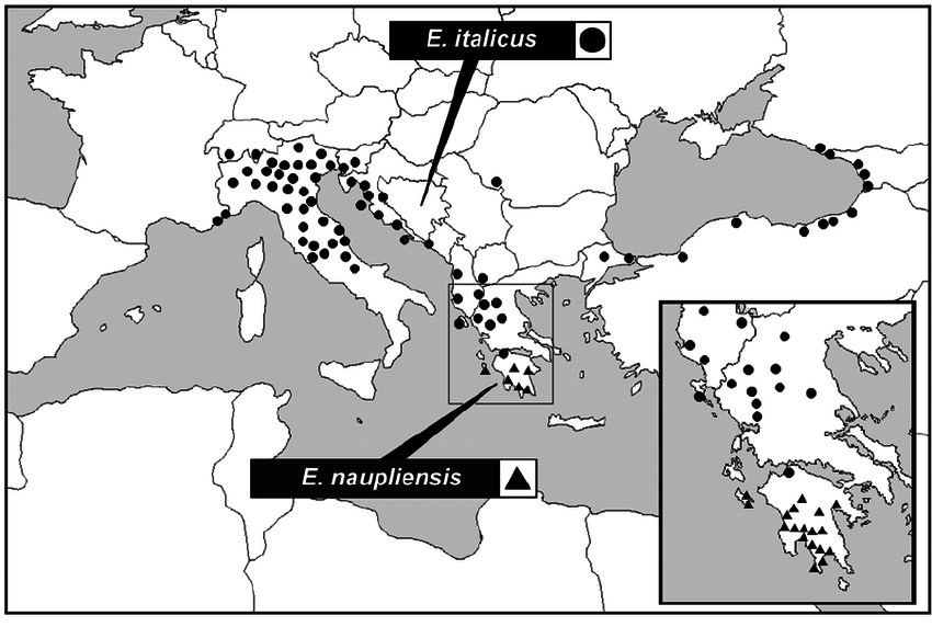 Despite being the largest species in its genus, E. italicus varies quite a bit in size. Swiss specimens had lengths between 2.9 and 4.9 centimeters. Males have an average length of 3.7 centimeters, while females averaged of 3.9 centimeters. The coloration of E. italicus ranges from dark reddish brown to bluish black. The ventral side and telson are slightly lighter. E. italicus hunts a range of arthropods and It only hunts prey smaller than itself. It has been observed seen hunting isopods (pillbugs), centipedes, earwigs, crickets and various moths and spiders. E. italicus rarely uses its stinger and is considered to be harmless.