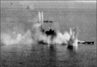“At 8.10am on October 24 a spotter aircraft from the US carrier Intrepid spied the Japanese fleet, and by 10.27am, according to Japanese naval records, battle was formally engaged, with the Musashi’s massive guns in action for the first time. But with few Japanese aircraft to fend off the airborne attacks, the enormous vessel eventually became a sitting duck, reduced to firing its mammoth guns into the water to send up huge spouts of water aimed at knocking the attacking aircraft out of the air. “Running into one of these geysers was like running into a mountain,” one US pilot, Jack Lawton, was recorded as saying after the battle. “I felt the muzzle blast each time they fired. I could swear the wings were ready to fold every time these huge shockwaves hit us.” /+\