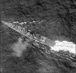 “The last American attack was over by 3.30pm, according to the US Naval Historical Centre, leaving the Musashi listing heavily from some 37 direct torpedo and bomb hits (the figure is disputed). At 7.15pm, Captain Toshihira Inoguchi retired to his cabin, intending to go down with his ship. The order to abandon ship came 15 minutes later and at 7.36pm the Musashi capsized and sank. Of the crew of 2,399, only 1,376 survived.” /+\