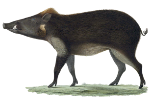 Javan warty pigs (Sus verrucosus) are also known as Javan wild pig. They are even-toed ungulates in the family Suidae and live on the Indonesian islands of Java and Bawean. They used to live on Madura but now are considered extinct there. The have been is listed as Endangered on the International Union for Conservation of Nature (IUCN) Red List since 1996. [Source: Wikipedia]
