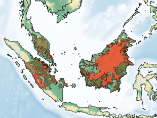 Bearded pigs (Sus barbatus) live in Malay Peninsula, Sumatra and Borneo and smaller islands in Indonesia such as the Riau Archipelago, Bangka, Karimata Island to the south, as well as Sibutu and Tawitawi islands in the Sulu Archipelago, and Balabac and Palawan and the Calamian islands in the western Philippines. [Source: Nicole Knibbe, Animal Diversity Web (ADW) /=]