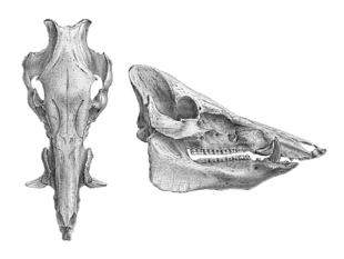 Javan warty pigs have slender legs and a long tail. The tail has a small tuft of hair on it. The head is large, heavy and appears slightly convex when viewing it in profile. The face is long, and the ears are large. The dental formula is 1/3,3/1,1/2,3/3.