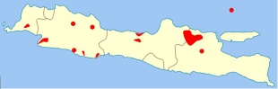 Javan warty pigs are found in secondary forest at elevation levels below 800 meters (2624.67 feet). Their distribution is fragmented, because human settlements and agricultural areas now occupy much of their original habitat. [Source: Sara McMahon, Animal Diversity Web (ADW) /=]