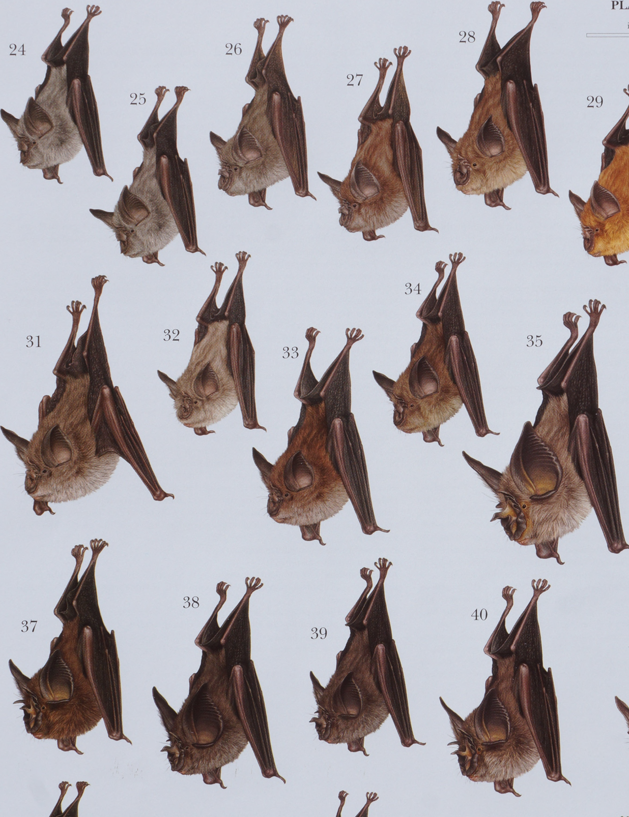 Horseshoe Bat Species: 27) African Forest Horseshoe Bat (Rhinolophus silvestris); 28) Upland Horseshoe Bat (Rhinolophus hillorum); 29) Sakeji Horseshoe Bat (Rhinolophus sakejiensis); 30) Bokhara Horseshoe Bat(Rhinolophus bocharicus); 31) Greater Horseshoe Bat (Rhinolophus ferrumequinum); 32) Geoffrey's Horseshoe Bat (Rhinolophus clivosus); 33) Greater Japanese Horseshoe Bat (Rhinolophus nippon); 34) Horacek's Horseshoe Bat (Rhinolophus horaceki); 35) Maclaud's Horseshoe Bat (Rhinolophus maclaudi); 36) Ziama Horseshoe Bat (Rhinolophus ziama); 37) Hill's Horseshoe Bat (Rhinolophus hilli); 38) Kahuzi Horseshoe Bat (Rhinolophus kahuzi); 39) Willard's Horseshoe Bat (Rhinolophus willardi); 40) Ruwenzori Horseshoe Bat (Rhinolophus ruwenzorii); 41) Chinese Horseshoe Bat (Rhinolophus xinanzhongguoensis); 42) Big-eared Horseshoe Bat (Rhinolophus macrotis); 43) Osgood's Horseshoe Bat (Rhinolophus osgoodi); 44) Allen's Horseshoe Bat (Rhinolophus episcopus); 45) Thai Horseshoe Bat (Rhinolophus siamensis); 46, Schnitzler's Horseshoe Bat (Rhinolophus schnitzten); M) King Horseshoe Bat (Rhinolophus rex); 48) Marshall’s Horseshoe Bat (Rhinolophus marshalli))
