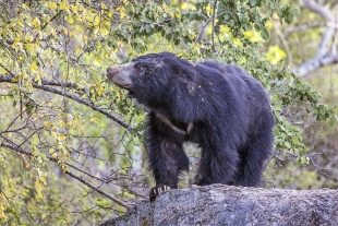 The first reports of sloth bears by European hunters in India described their trunklike snouts, their habit of hanging from tree limbs and their baby-like cries. John Eliot wrote in National Geographic, “ Scientific blunders can live on forever. When 18th-century European museum curators were first sent specimens of a large furry mammal with long curved white claws, they named it "bear-like sloth" because its claws resemble those of South American sloths. Later taxonomists realized that the species was a tropical bear unrelated to sloths, but its wrongheaded name remains — the sloth bear. They sound like bellows when using their flexible snouts and lips to blow away dirt and suck up termites and ants. But don't be misled: This frowsy, gentle-looking bear can be ferocious, occasionally mauling or killing villagers who enter the forest. Yoganand often talks with villagers to help minimize conflicts. "Attacks can be prevented if people avoid certain places."