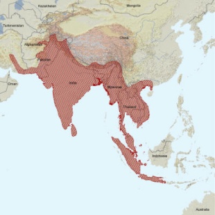 range of Asian water monitors, different colors are for different subspecies