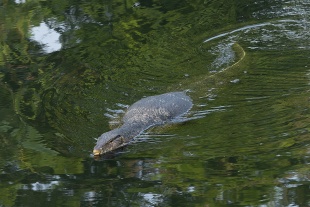 Asian water monitors are excellent swimmers. They use the raised fin on their tails to steer through water. They defend themselves using their tails, claws, and jaws, and are very fast for their size due to their powerful leg muscles. While hunting for aquatic prey, Water monitors can remain submerged for up to 30 minutes. When they fight they use their flat tail as weapons. [Source: Doug Byers, Animal Diversity Web (ADW) /=\, Wikipedia]