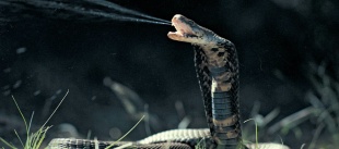Equatorial spitting cobras (Naja sumatrana) also called the Malayan spitting cobras, golden spitting cobras, Sumatran spitting cobras and Palawan spitting cobras. Found in Brunei, Indonesia (Sumatra, Borneo, Bangka, Belitung), Malaysia, Palawan in the Philippines (), southern Thailand, Singapore, they are variably colored spitting cobras and can spit venom in the eyes of prey or predators up 1.5 meters (five feet) away. The venom shocks and momentarily blinds animal leaving them vulnerable to a fanged attack. Local people often wear shiny pendants that they hope the snake will confuse for eyes.