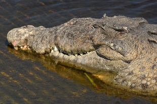 A crocodile’s ears, eyes and nostrils are located on the top of it head. This allows it to breath, hear, smell and see above water with just a small part of its body exposed. If you are brave enough to go swimming in croc infested waters keep your eyes pealed for beady crocodile eyes, peeping above the surface.