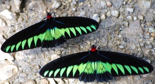 The Raja Brooke Birdwing is one of the world’s largest, rarest and most colorful butterflies. Native to the rain forest Borneo, it brilliantly colored and has a wingspan of 6 to 12 inches. It was first caught by Alfred Russell Wallace who named after a fried in Sarawak. One reason its so rarely seen is that it spends most of its time in the upper canopy. Wallace wrote: "The beauty and brilliancy of this insect are indescribable, and none but a naturalist can understand the intense excitement I felt when I at length captured it...my heart began to beat violently, the blood rushed to my head, and I felt much more like fainting than I have done with immediate apprehension of death. I had a headache the rest of the day." Today a prepared pair of birdwing butterflies sell for up to $2,500 on the black market.