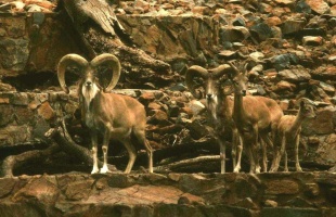 The landscape of central Asia is vast and mostly open. Mountains have been worn down by erosion and huge sloping hills remain, allowing a great range of visibility for the animals which live there. Vegetation is dominated by grasses, with very few trees present on the landscape. In protected areas, argali tend to prefer gently sloping areas with soft broken terrain, although ewes with lambs often seek out more precipitous areas, with canyons and jagged rocks. In areas where they are extensively hunted (such as Kazakhstan), they are more likely to be found in forested areas. In parts of China and Russia where they compete for resources with numerous domestic stock, Argalis more regularly take up residence in precipitous, jagged areas. When in the mountains, avod areas that have heavy snow cover in the winter, following winds that blow snow off the earth. Rams are generally found at higher elevations more regularly than females and stay at higher elevations longer during the wintertime.[Source: Wikipedia; Alexander K. Fedosenko and David A. Blank Argali. Mammalian Species, No. 773, (July 15, 2005),pp. 1-15]