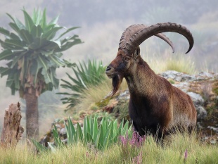 Walia ibex (Capra walie) are also called or Ethiopian ibex. They are found in the Semien Mountains of the Ethiopian Highlands, where they have recently been upgraded from critically endangered to endangered. They are sometimes considered a subspecies of Alpine Ibex. This Ibex was the national emblem of the Axumite Empire.