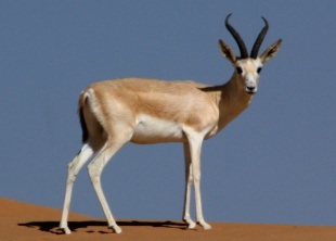Arabian sand gazelles (formerly Gazella subgutturosa marica) were long considered a subspecies, but have been recognized as a species Gazella marica since 2011. They occurs in Saudi Arabia, southern Syria, southwestern Iraq, United Arab Emirates, Oman and offshore Persian Gulf islands.