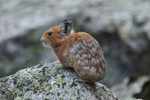 Pikas are small, mostly mountain-dwelling mammal native to Asia and North America, with most of the 30 species in Asia. They have short limbs, very round bodies, even coats of fur, and no external tail. They resemble their close relatives rabbit, but have short, rounded ears. Pikas are among the highest-dwelling mammals. They have been observed on high slopes of Mt. Everest. According to the Guinness Book of Records in the 1980s, they were the highest living animal in the world. A pika has been observed at an elevation of 6,130 meters (20,113 feet). [Source: Wikipedia]