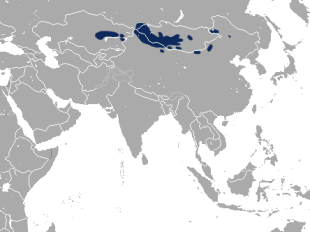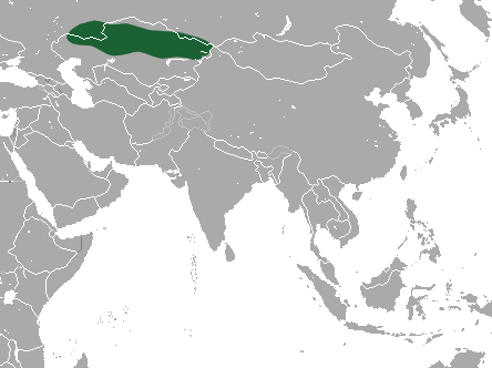 Pallas’s pikas are mainly found in in mountain and steppe regions of eastern Kazakhstan and western Mongolia and are found in few spots in southern Siberia in Russia and northwestern China. They range from the southern parts of the Karkaralinsk Mountians in Kazakhstan south into Xinjiang, in northeastern China and are also found in the Altai Mountains in Kazakhstan and Mongolia north to Tuva in Russia. The areas in which they reside have cold, arid or semi-arid climates with mean annual precipitation of approximately 13 centimeters (5.1 inches). Among the most common plants in their habitat are spiraea (Spiraea hypericifolia), yellow pea trees (Caragna pygmaes) and wild roses (Rosa spp.).[Source: Anna DeMers, Animal Diversity Web (ADW) /=]