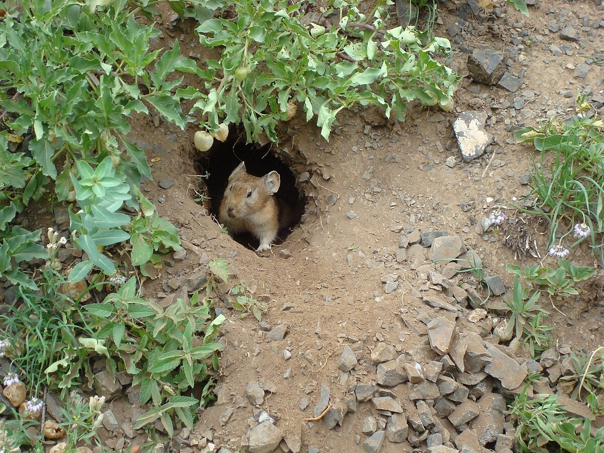 Talus-dwelling pikas inhabit the crevices between rocks on mountain slopes. They like rocky mountainsides, where numerous crevices are available for shelter and forage in the alpine meadows that abut the rocks or from the vegetation that grows between the rocks. They are found across a wide altitudinal range from below 90 meters to above 6000 meters (20,000 feet). Among the talus-dwellers are Himalayan pikas, alpine pikas, collared pikas, silver pikas, Glover’s pikas, Chinese red pikas, northern pikas, Ili pikas, large-eared pikas, Royle’s pikas, Turkestan red pikas and American pikas. /=\