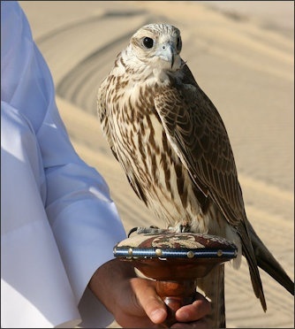 Saker falcons are greatly loved and sought after by wealthy Arab falconers. A favorite hobby of wealthy businessmen and sheiks from the Persian Gulf is to fly to the deserts of Pakistan with their favorite falcons to hunt the lesser MacQueen's bustard, a hen-sized bird prized as a delicacy and an aphrodisiac which has been hunted extinction in the Middle East. Rare houbara bustard are also favored prey (See Birds). Winter is favorite time to hunt with sakers. Females are more sought after than males.