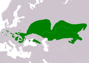 European hamsters (European hamsters) can be found as far west as northern France, Belgium and the Netherlands and as far east as the Altai Mountains and Yenisey River in Russia. They In Europe they range as far north as Germany and Belarus and as far south as Bulgaria and Ukraine. In the east they can be found in China, Mongolia and Kazakhstan. The preferred natural habitat of European hamsters is steppe and grassland, but they have expanded into agricultural areas and some green patches in urban areas. Their burrows are typically extensive and occur in dense loess or clay soils. They are generally found at an average elevation of 400 meters (1312 feet). [Source: Sierra Lippert, Animal Diversity Web (ADW) /=]
