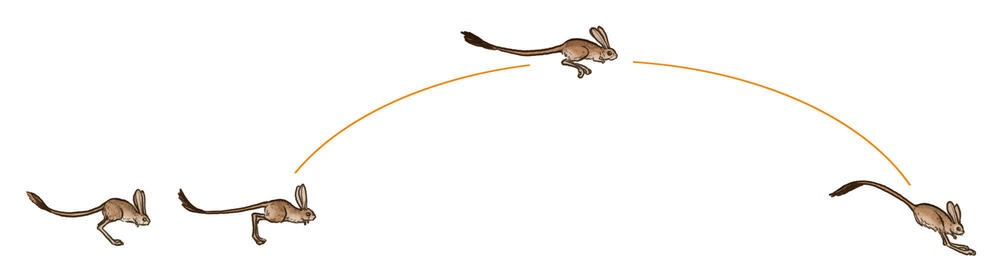 Jerboas are also similar to kangaroos. Again both have long hind legs, short forelegs, and long tails. Jerboas move around in a similar way as kangaroos — hopping — however, the anatomy of jerboas is more adapted to erratic hopping locomotion, making use of sharp turns and great vertical leaps to confuse and escape predators, rather than for sustained hopping over long periods of time, which is what kangaroos are good at. Researchers have found that, when jerboas execute their vertical leaps, the primary tendons in the hindlimbs only recovered and reused on average 4.4 percent of energy contributed to the jump — lower than many hopping animals.