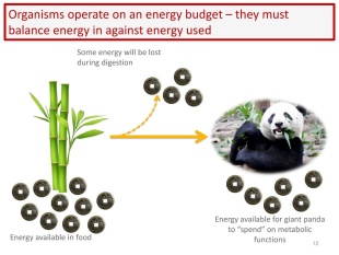 Pandas don’t have a specialized gut like cows and deer for breaking down fibrous material. To get enough nourishment from the relatively nutrient-free bamboo, the panda has a stomach like a conveyor belt. Food is barely chewed, only 17 percent of it is digested, compared to 80 percent for most herbivores, and it passes through the body in as little as five hours. After a panda has sat in one place for a while it is not uncommon for it leave behind seven to nine kilograms of woody, spindle-shaped droppings. On average a panda produces 13 kilograms of droppings a day.
