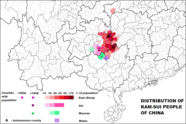 Maonan autonomous prefectures and counties, the tiny blue area at the bottom