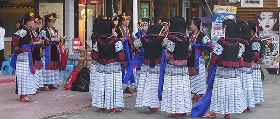 The Bouyei have a rich repertory of songs that are usually sung at ceremonies and festivals. In some places professional singers are hired to entertain at their weddings. Some of their songs are called “mountain songs.” Their “big songs” are sung at wedding and funerals. Their small songs are usually sung at festivals and love encounters. It is said that the Bouyei can spend six or seven days singing without repeating any song. Drums are their main musical instrument. The Bouyei regard their oldest drums as sacred. Usually there are a lot of drawings in the drum outer side. Among their dances the most famous are: Dance of Embroidery, Lion Dance and Dance of Husking Rice. *\