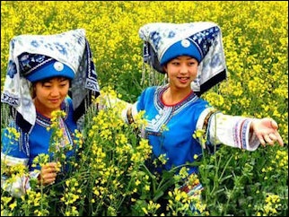 A lot of single young men and ladies express their love by blowing the wood leaf or singing songs. When young man wants to get engaged his family asks a matchmaker to go to the lady's house to propose. Once they get engaged, the lady's family hosts an engagement dinner with relatives and friends. Two or three days ahead of the wedding, half a pork, a rooster and duck and a pot of water are sent from the bridegroom's to the bride's house. The bride's family also hosts a banquet at the time of the wedding. In the past, bride didn't move to her husband’s home until after one or two years' living in her mother's home. [Source: Chinatravel.com \=/]
