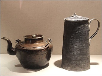 Clothes and jewelry contain some of the finest examples of Mongol art. A Mongol “Headdress Adorned with Coral Beadwork and Turquoise” is on display at the Shanghai Museum. According to the museum: Mongolian costume mainly consists of jewelry, robes, belts and boots, all with bright and rich colors. The costumes vary with different regions and tribal clans and with women’s headgear boasting greatest differences. Mongolian women's headgear is very particular. A set of headgear was often worth many horses or hundreds of camels according to records. [Source: Shanghai Museum]