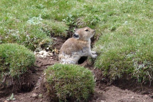 Plateau pikas are found in the Alpine meadows and steppes at elevations of up to 5300 meters (17,388 feet). They prefers to make burrows in flat to gently sloping terrain and silty to sandy-soiled meadows with few rocks and good drainage. Simon Denyer wrote in Washington Post: “The plateau pika occupies an almost identical ecological niche to the United States’ prairie dog. A pika warren can stretch underground for up to 20 yards and have several small openings, from which the nervous animals poke their heads, scanning the grasslands for predators and emitting a faint, high-pitched alarm call on any sign of trouble. [Source: Simon Denyer, Washington Post, July 22, 2016]