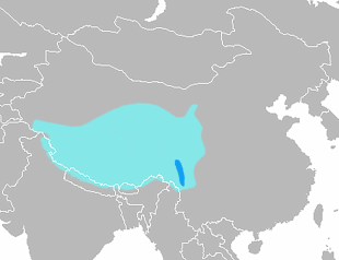 Bharal live at elevations of 1,200 to 6,000 meters (3,940 to 19,670 feet) in temperate areas, where the climate is similar to that of Alpine regions of the United States and Europe. They are distributed broadly in places relatively inaccessible to humans. across the Tibetan Plateau, in the Himalayas and high montane regions in China, northern Nepal, India and Myanmar and the northeastern corner of Pakistan near the Chinese border. [Source: Mary Alice Smith, Animal Diversity Web (ADW) /=]