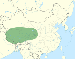 White-lipped deer (Przewalskium albirostris) are also known as Thorold's deers and to Tibetans as "shor". A threatened species, they are deer found in high-altitude rhododendron and coniferous forests, grasslands, shrubland and alpine meadows in the eastern Tibetan Plateau at elevations of 3,500 to 5,000 meters (11,483 to 16,404 feet), mainly in Qinghai Province and Tibet as well as areas further north in central Western China. Rough terrain and hunting pressure by humans are the main reasons for their patchy distribution.