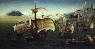 Money from the empire ended up in the hands of Antwerp merchant syndicates and was wasted on Moroccan wars, dynastic marriages, and ostentatious displays. What sealed the decline were events not in Asia but in North Africa. Some 163 years after Prince Henry the Navigator attacked Ceuta, the Portuguese army headed by King Sebastion was defeated by the Moors. The Portuguese empire by this time had been large disassembled by the Dutch and British. [Source: Merle Severy, National Geographic, November 1992] In 1578, Portugal entered a reckless war with Morocco in an efforts to annex it. The Portuguese set up a stronghold in Cuenta, on the northern coast of Africa just below the Straits of Gibraltar. Their ambitions to claim Morocco, however, came to an end during a four-hour Battle of the Three Kings on August 4, 1578 when a force of 25,000 Portuguese soldiers where crushed by a 50,000-strong Moorish force. According to legend only 50 men survived and hundreds of guitars littered the battle. Among the dead were the Portuguese monarch, King Sabastão, and his nobles. The Moroccan sultan died of a heart attack. The defeat spelled the end to the great Portuguese trading empire and allowed the Spanish, British, French and Dutch to take over the trade routes to Asia and the territories in the New World. The Portuguese managed to hold some fortresses on the Moroccan coast but they never again presented a threat to the Moroccans or any one else.