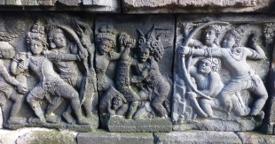 Prambadan is surrounded by the ruins of 240 small “guard “ temples. Altogether there are 400 temples in the Prambadan area. Most are within five kilometers of Prambanan village and are generally not visited except by archeology nuts. But that is not to say they are not without merit. A good way to explore them is to rent a bicycle. The proximity of Prambanan and Buddhist Borobudur temple tells us that on Java, Buddhism and Hinduism lived peacefully next to one another.