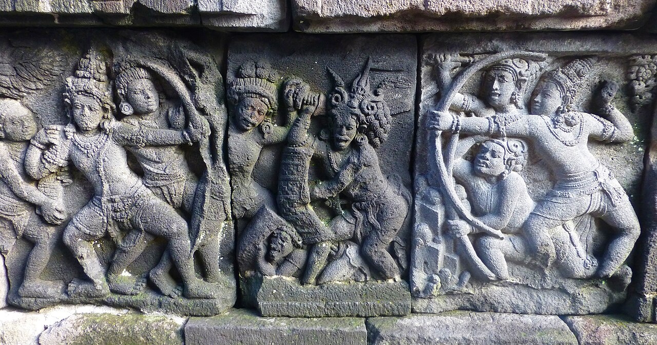 “From the 9th to mid 10th centuries, the Mataram Kingdom witnessed the blossoming of art, culture and literature, mainly through the translation of Hindu-Buddhist sacred texts and the transmission and adaptation of Hindu-Buddhist ideas. The bas-relief narration of the Hindu epic Ramayana was carved on the wall of Prambanan Temple. During this period, the Kakawin Ramayana, an old Javanese rendering was written. This Kakawin Ramayana, also called the Yogesvara Ramayana, is attributed to the scribe Yogesvara circa the 9th century CE, who was employed in the court of the Mataram in Central Java. It has 2774 stanzas in the manipravala style, a mixture of Sanskrit and archaic Javanese prose. The most influential version of the Ramayana is the Ravanavadham of Bhatti, popularly known as Bhattikavya. The Javanese Ramayana differs markedly from the original Hindu.