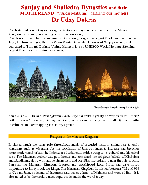 Mataram, Srivijaya, Sanjaya and the Sailendra