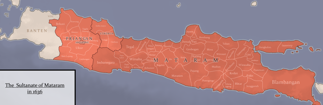 The Mataram Sultanate rose in the 16th century on Java and enduring through the early colonial period until the 18th century. First the Portuguese and then Dutch dominated trade during this period. The Dutch East India Company weakened and ultimately took control of the Mataram Sultanate by dividing it into vassal states around 1750. It later came under the control of Dutch colonial government.