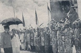 According to Lonely Planet: “By 1956 President Sukarno was openly criticizing parliamentary democracy, stating that it was ‘based upon inherent conflict’. He sought a system based on the traditional Indonesian village system of discussion and consensus, which occurred under the guidance of village elders. He proposed the threefold division – nasionalisme (nationalism), agama (religion) and komunisme (communism) – be blended into a cooperative Nas-A-Kom government, thereby appeasing the main factions of Indo―nesian politics: the army, Islamic groups and the communists. In February 1957, with military support, Sukarno proclaimed ‘guided democracy’ and proposed a cabinet representing all the political parties of importance (including the PKI). For the next 40 years, Western-style, party-based democracy was finished in Indonesia, though the parties were not abolished. [Source: Lonely Planet]