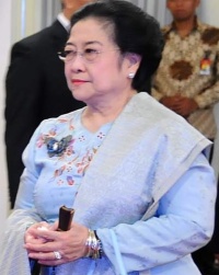 Megawati Sukarnopurti, Sukarno's eldest daughter, was the fifth president of Indonesia and a major figure in the pro-democracy movement that ousted Suharto. During the Suharto era, she was an opposition political leader of the Indonesia Democratic Party (PDI), one of Indonesia's two legitimate political parties. In early the post-Suharto era she was Indonesia’s most popular politician. Her full name is Dyah Permata Megawati Setiawati Sukarnopurti. "Purti" means "daughter of" in Indonesian. "Mega" means cloud.