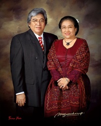 Megawati was married three times. Her first husband, an air force lieutenant, died in a plane crash when she was pregnant with her second son. The plane went down in West Papua (New Guinea, Irian Jaya). His body was never found. her second marriage, to an Egyptian diplomat, was annulled two weeks after they eloped. Her current husband, Taufik Kiemas, is a well-connected businessman who owns a chain of gas stations and has served in parliament. She has three children from her first marriage.