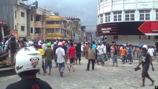 Describing a riot in Ambon, Kathleen Reen wrote in Time, "I rounded a corner and found 500 people locked in a tense showdown. Christians on one side, Muslims on the other. Women stood arm in arm staring at their rivals. Men stood stiff, holding machetes and rifles. Children crawled away down the sidewalk."