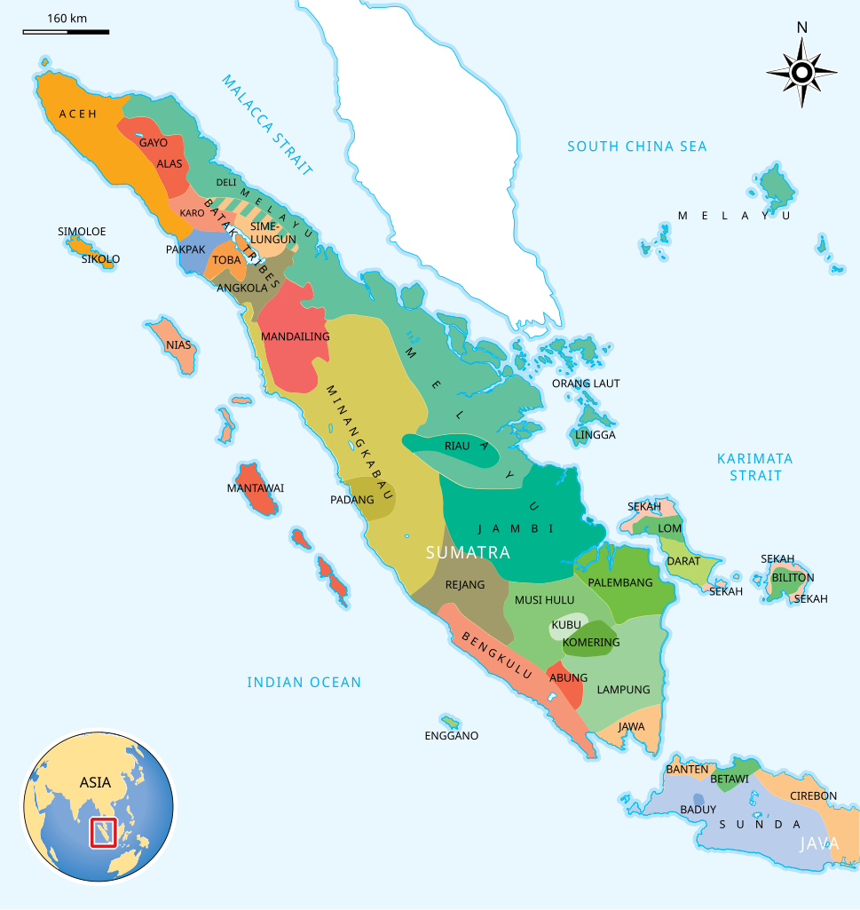 This diversity is reflected in regional patterns across the island. North Sumatra is characterized by a Batak majority alongside substantial Javanese, Chinese, and Nias populations. West Sumatra remains overwhelmingly Minangkabau in composition, while Aceh is dominated by the Acehnese, with important minority groups such as the Gayo and Alas in the highlands. Together, these patterns underscore Sumatra’s remarkable ethnic and cultural plurality.